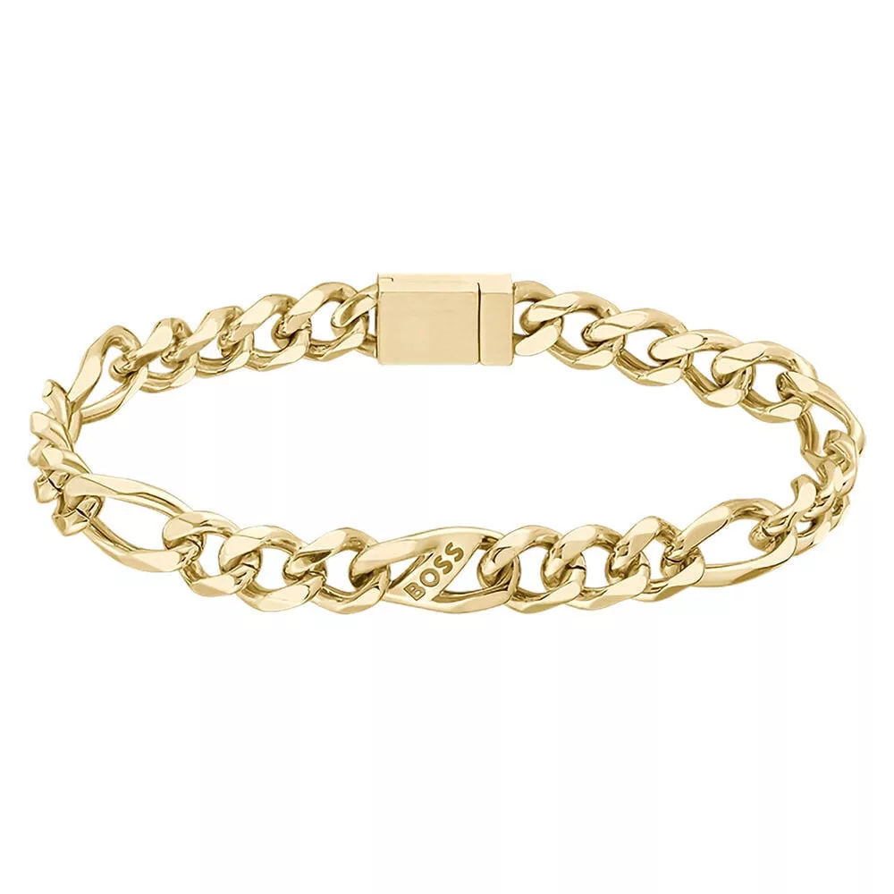 A BOSS Rian karkötő elegánsan kidolgozott, sárgaarany bevonattal, így letisztult és kifinomult kiegészítője lehet bármilyen összeállításnak.