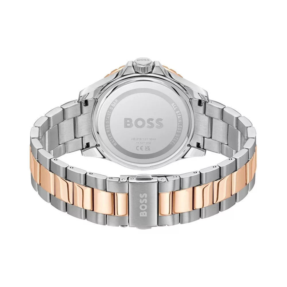 Ez a Hugo Boss karóra azoknak készült, akik értékelik a minőséget és a stílust. A kvarc szerkezet pontos időmérést biztosít, az edzett kristály üveg pedig ellenálló a karcolásokkal szemben. Az ezüst-rose színű nemesacél tok és szíj eleganciát sugároznak. 50 m vízállóságának köszönhetően sportosabb helyzetekben is viselhető. Eredeti Hugo Boss dobozban kapható. Ideális választás üzletembereknek, akik értékelik a pontos időmérést és a kifinomult stílust. Hugo Boss sport férfi karóra 1514296