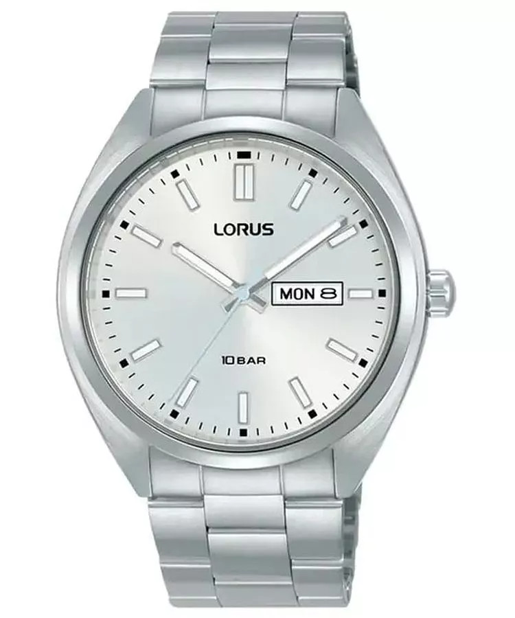 A Lorus Classic RH371AX9 egy elegáns férfi karóra, ideális a klasszikus stílust és megbízhatóságot kedvelő férfiak számára. A precíz kvarcművel felszerelt óra pontosságot és kényelmet biztosít a mindennapi használathoz. A burkolat és a karperec ezüstszínű rozsdamentes acélból készült, amelyek az ezüstszínű számlapjával egységes, elegáns egészet alkotnak. Az óra hónap és hétköznap dátum funkcióval, valamint a mutatókon lumineszcens bevonattal rendelkezik, így sötétben is könnyen leolvasható az idő. Az ásványi üveg megvédi a számlapot a karcolásoktól és a sérülésektől, a 100 méteres vízállóság pedig védelmet nyújt úszás közben. A csavaros hátlap növeli az óra tartósságát, így tökéletes választás minden elegáns férfi számára.