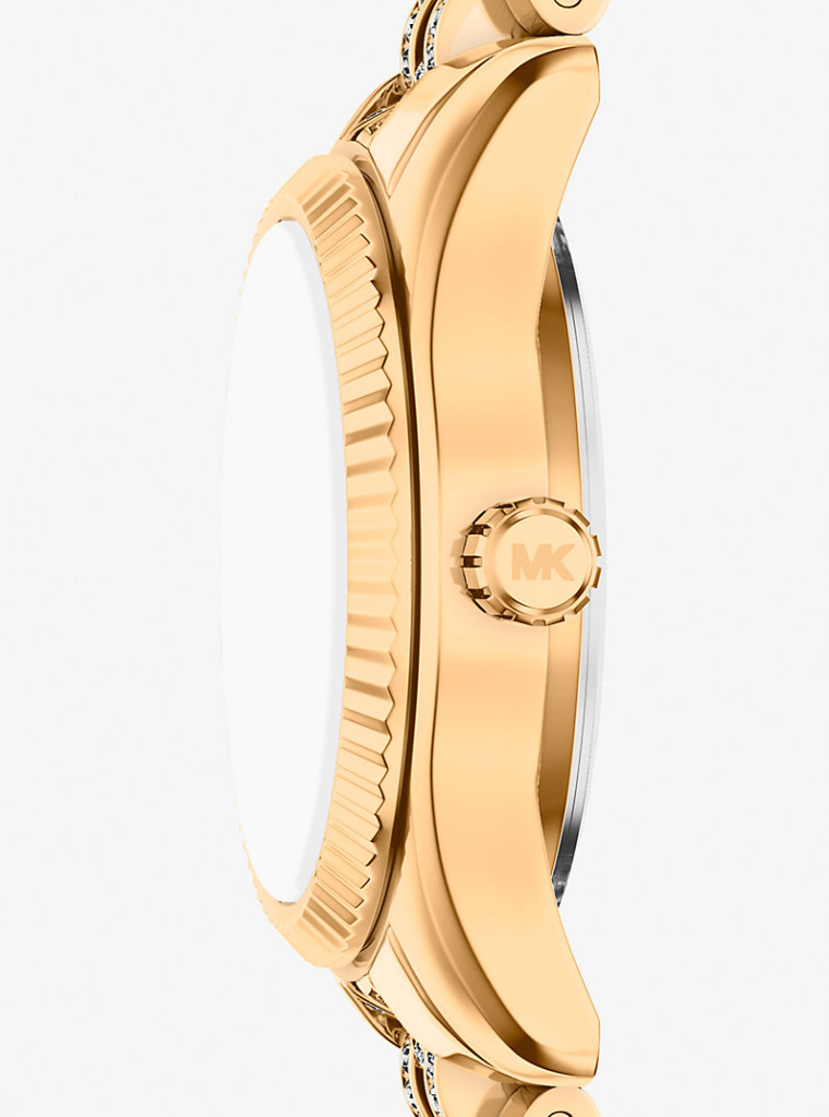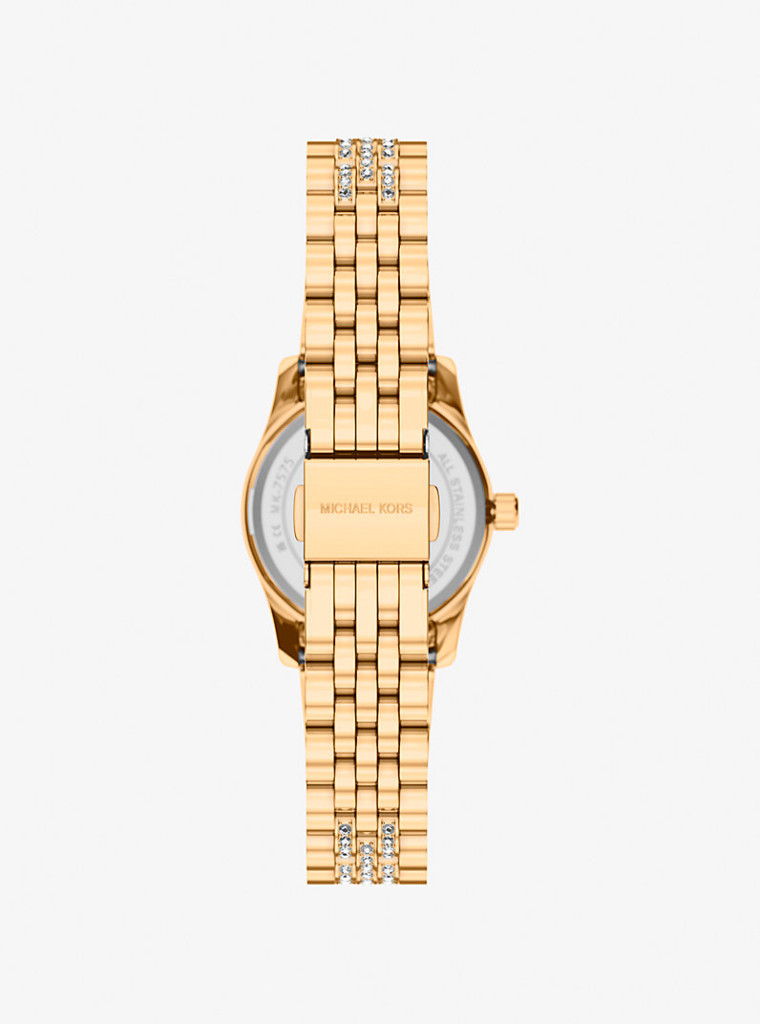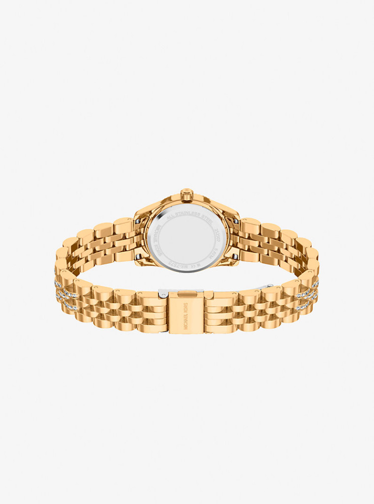 Michael Kors MK7575 (Lexington) egy klasszikus, teljesen arany színű női karóra, amely inkább ékszerként működik, mint hagyományos időmérőként. Ez a darab a „kevesebb több” helyett a „csillogjon rendesen” irányt képviseli.