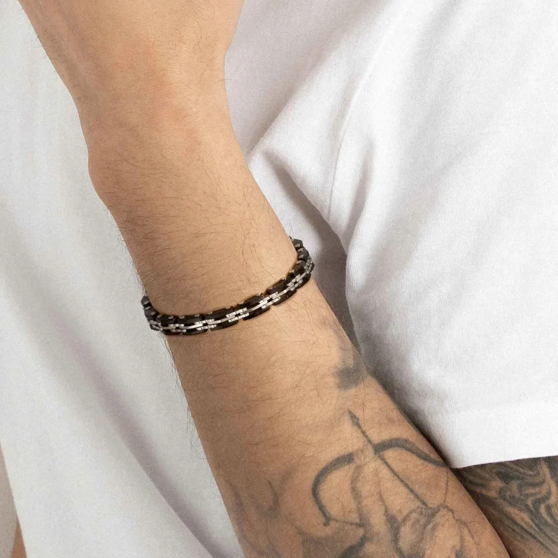 Strong Diamond Edition férfi karkötő fekete PVD bevonattal, rozsdamentes acél láncszemekkel.