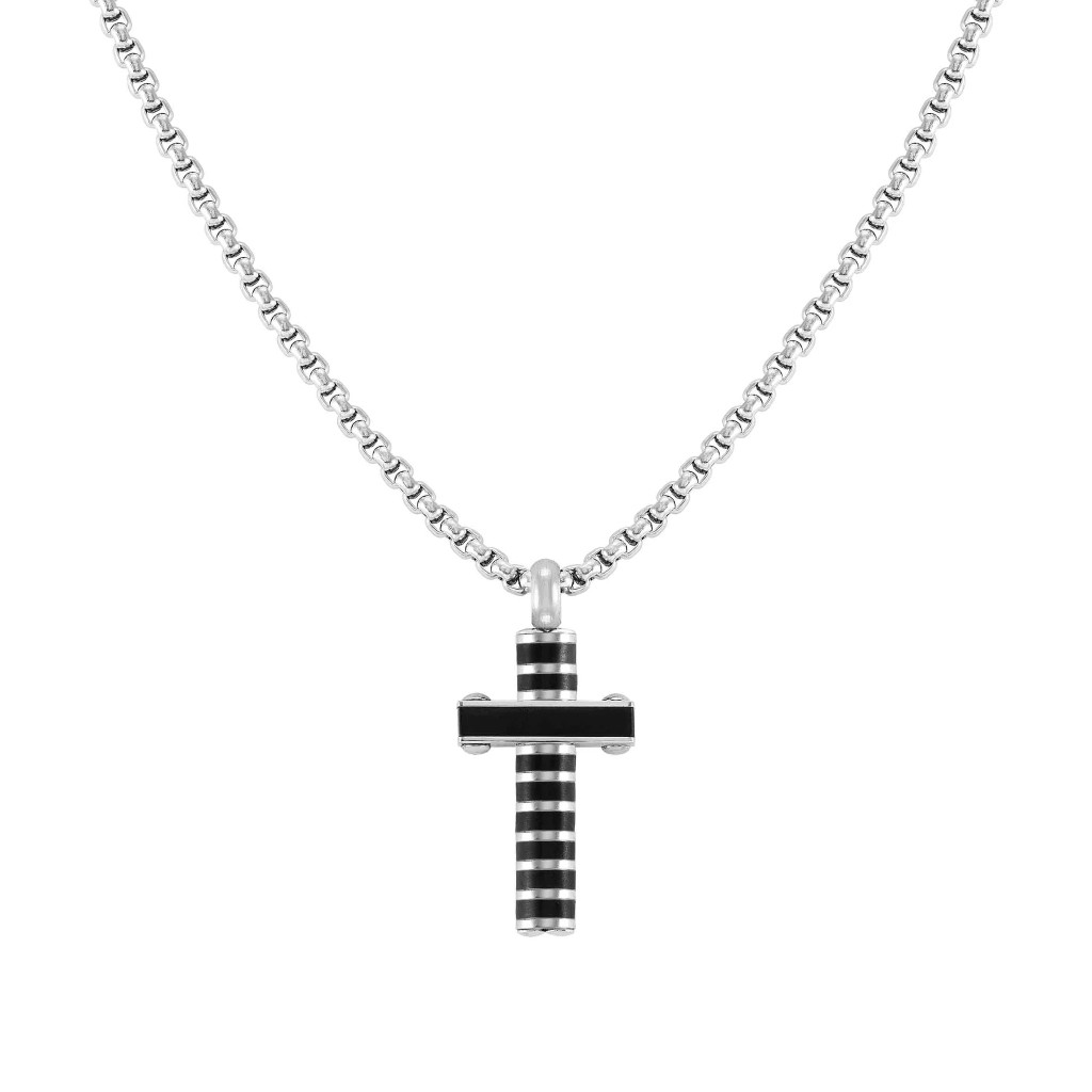 Strong Diamond Edition férfi nyaklánc fekete PVD bevonattal, rozsdamentes acél kereszttel, egyszerű láncon.
