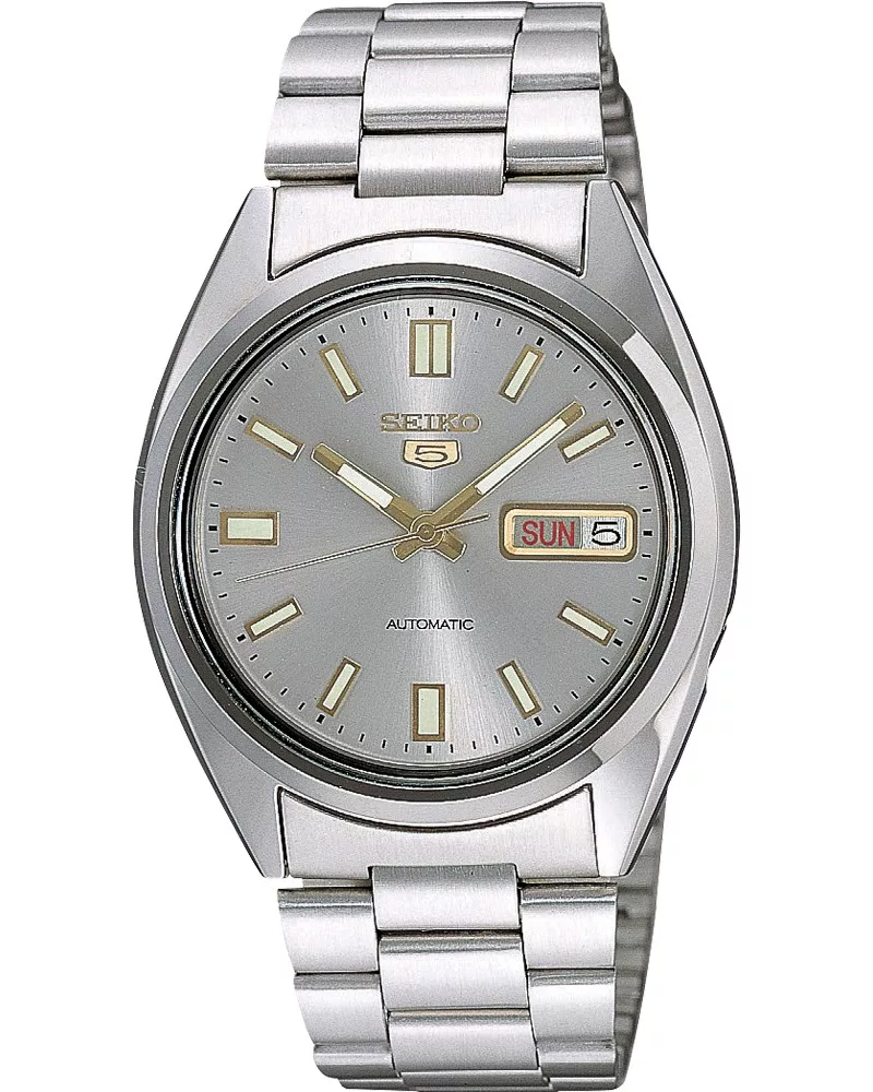 A Seiko 5 SNXS75K1 automata férfi karóra a klasszikus Seiko 5 vonalat képviseli: tartós, egyszerű, mégis stílusos. A ~37-38 mm átmérőjű rozsdamentes acél tok kellően markáns, de nem túlöltözött, így olajozottan illik mind alkalmi, mind hétköznapi viselethez. A szürke számlap arany tónusú mutatókkal finoman kifinomult, kontrasztos dizájnt ad.