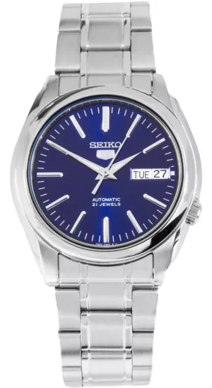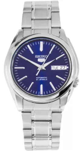 Ez az Seiko 5 SNKL43K1 automata férfi karóra ötvözi a klasszikus dizájnt és a megbízható japán mechanikát. A 38 mm átmérőjű rozsdamentes acél tok elegáns megjelenést ad, a kék számlap finom árnyalatában ragyog, passzol inghez és hétköznapi viselethez is. A karóra belsejét a Seiko 7S26 automata szerkezet működteti, amely 21 köves, és kb. 40-41 órás járástartalékot kínál — tehát nem kell naponta felhúzni.