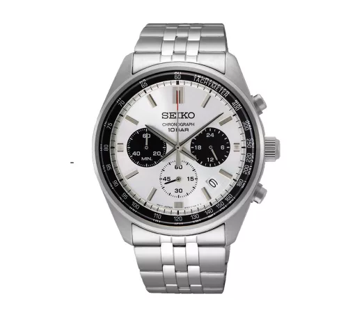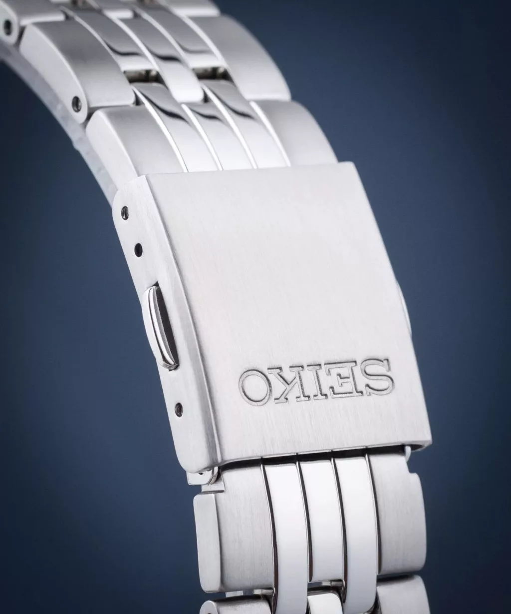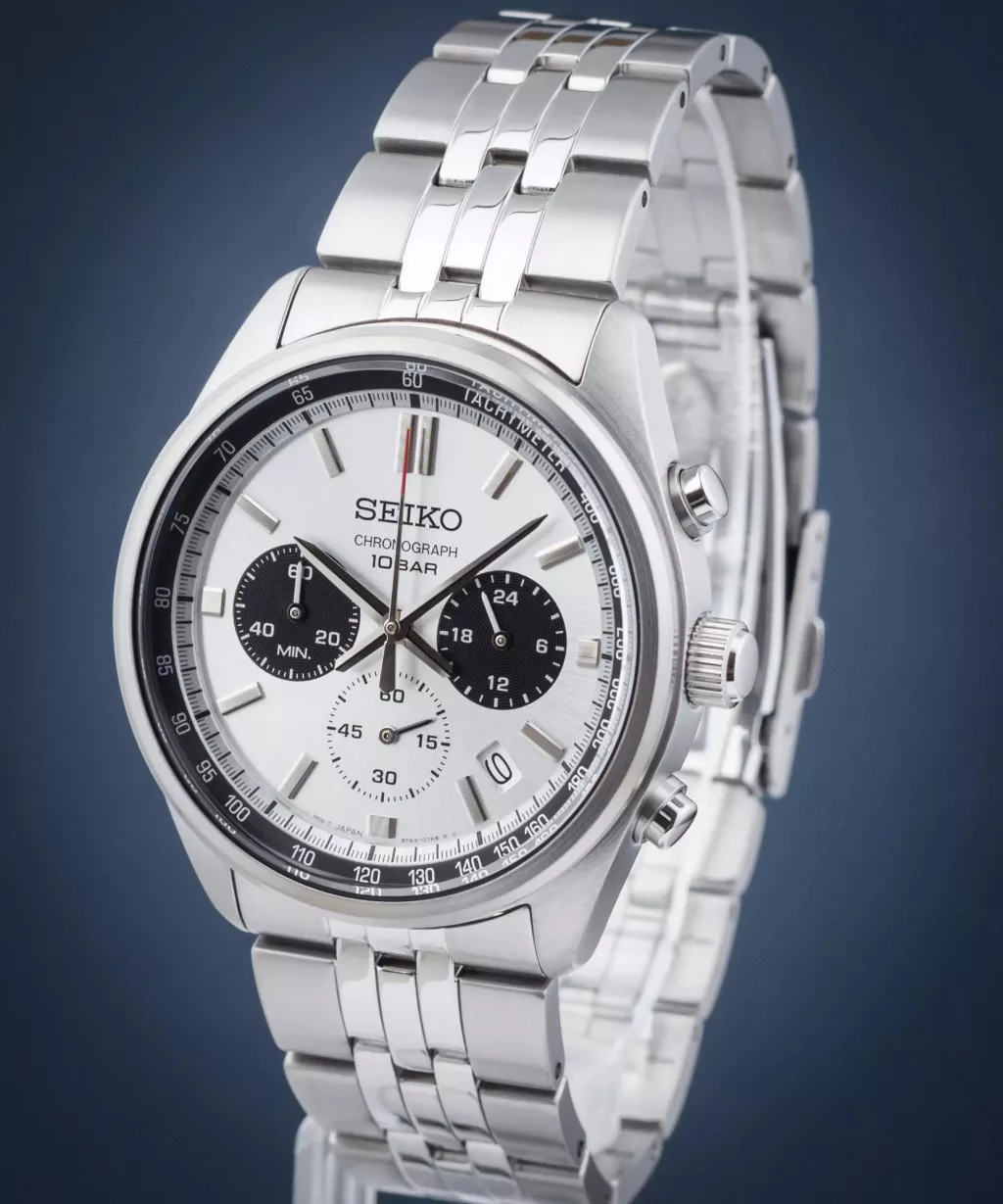 A Seiko SSB425P1 egy sportos kronográf férfi karóra, amely a dinamizmust és a precizitást hozza össze. A 41,5 mm átmérőjű rozsdamentes acél tok elegáns, de masszív megjelenést biztosít, míg a Hardlex kristályüveg védi a számlapot a karcolódásoktól. A kronográf funkció 1/5-másodperces léptékben méri az időt, van 24-órás segédóra és dátum ablak is — tehát nem csak nézni, használni is tudod.