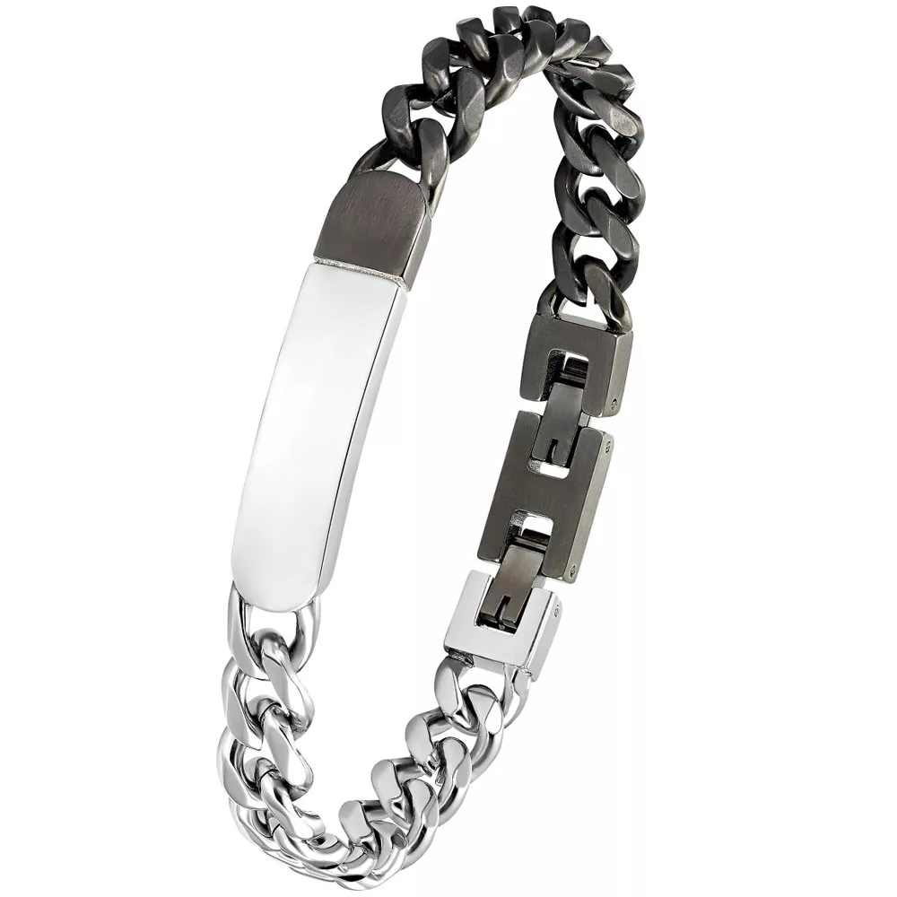 Ez a feltűnő, állítható hosszúságú karkötő (19,5 + 1,5 cm) abszolút kötelező darab az s.Olivertől a stílusos férfiak számára. A kiváló minőségű 316L-es rozsdamentes acélból készült karkötő fényes és matt hatásokkal lep meg ezüstben és IP Gunban. A fényes azonosító tábla egyedileg gravírozható, így ajándéknak is tökéletes. A praktikus összecsukható csattal könnyedén fel- és leveheted a karékszert. Viselje a karkötőt a mindennapokban, vagy üzleti megjelenésének megfelelően elhelyezett kiegészítőjeként. Kombináld a karkötőt a hozzáillő gyűrűvel és nyaklánccal, és alkosd meg a tökéletes megjelenést.