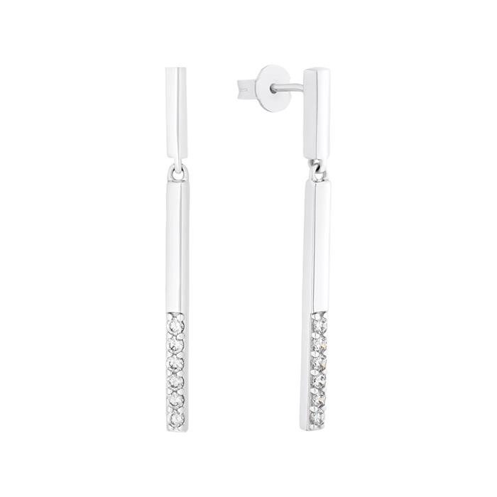 Álomszerű elegancia – ilyenek ezek a 925-ös ezüstből készült női fülbevalók. Mindegyik csaphoz tartozik egy pálca alakú medál, amely részben cirkónia kövekkel van kirakva.