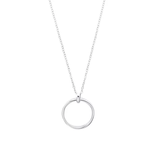 Elegán női nyaklán, finom kör medállal. Hossza 50-53 cm hosszban állítható. Anyaga rozsdamntes acél, színe ezüst színű. Kombináld kedvedre.