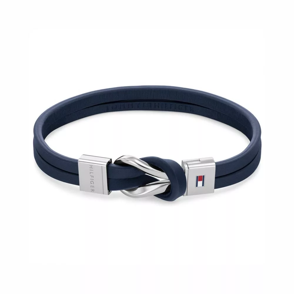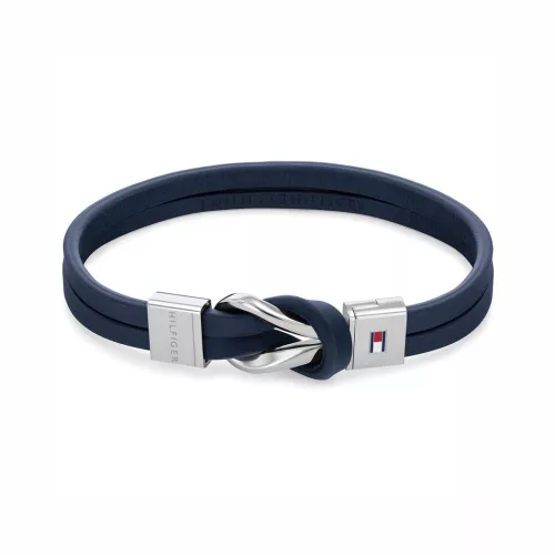A Tommy Hilfiger 2790443 férfi karkötője a modern férfi stílusának tökéletes kiegészítője. A karkötő fonott sötétkék bőrből készült, és ezüst színű, rozsdamentes acél díszítéssel van ellátva. A középső részen a híres háromszínű Tommy Hilfiger logóval ellátott csík található, amely kiemeli a márka stílusát. A 19 cm hosszú karkötő klasszikus, férfias megjelenést biztosít, miközben az acél és bőr kombinációja modern hatást kelt. A Tommy Hilfiger logóval ellátott ékszer ideális választás mindennapi viseletre vagy különleges alkalmakra.