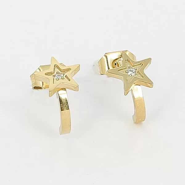 Mini fülbevalók sima acélból vagy finom aranyozással, két csillag motívummal, melyek közepén cirkónium kövek vannak.