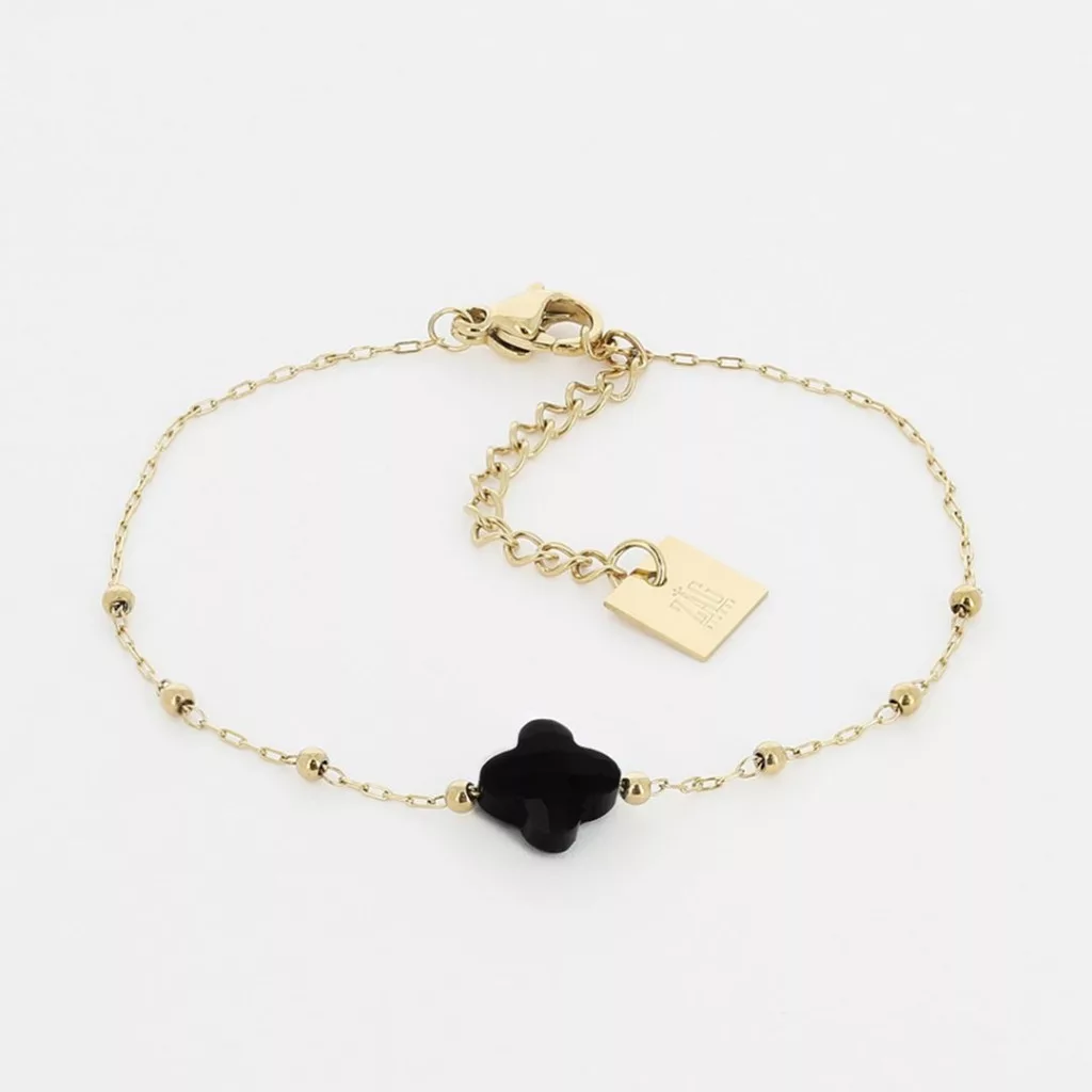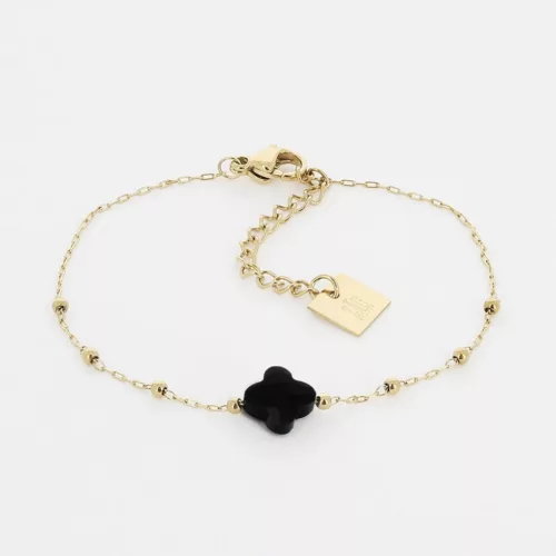 Lánckarkötő, melyben egy csiszolt, lóhere alakú természetes kő található.