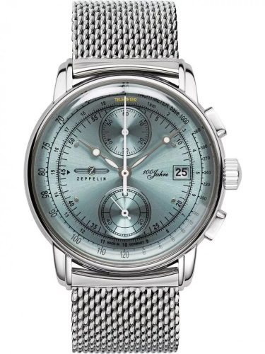Zeppelin 100 Jahre Zeppelin karóra 8670M-4 quartz szerkezettel 2 év magyarországi garanciával.. Az óra ezüst színű kör alakú rozsdamentes orvosi acél óratokkal, kék színű számlappal, és edzett ásványüveggel rendelkezik. Az óra vízállósága 3 ATM(fröccsenő víz ellen védett), átmérője 42mm, vastagsága 16mm. Szíja ezüst színű orvosi acél, aminek szélessége 22mm.